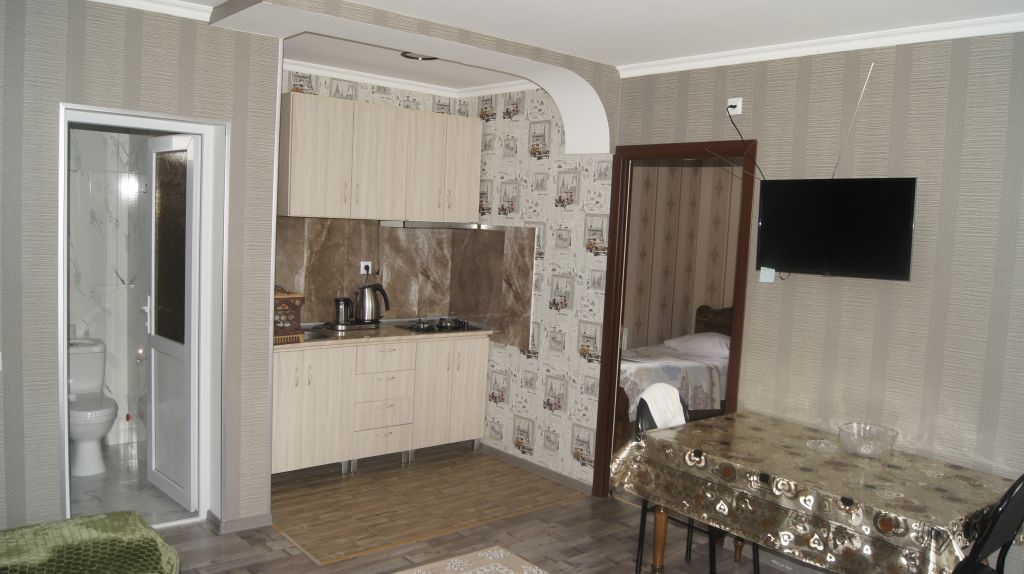 We have a family hotel: Vardziyskaya str., 26. The house consists of two floors. On the first floor there is one room with three beds (you can add a bed), also on this floor there is a living room, kitchen, one toilet and shower. On the second floor there are two small bedrooms. One bedroom has one double bed. In the other room there are two beds. There is also a living room, a kitchen and a toilet with a shower. There is a balcony overlooking the Rabat fortress!