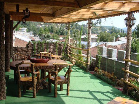 The hotel is two minutes walk from the White Bridge. Very likely, the palace of Aeëtes, popular king of Colchis, stood at the very spot of the hotel. The edifice is styled according to the ancient Colchis fortress and decorated with the mural illustrations on Greek mythology.