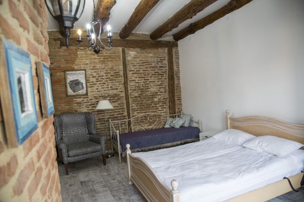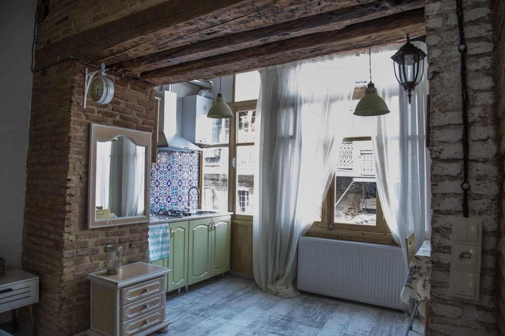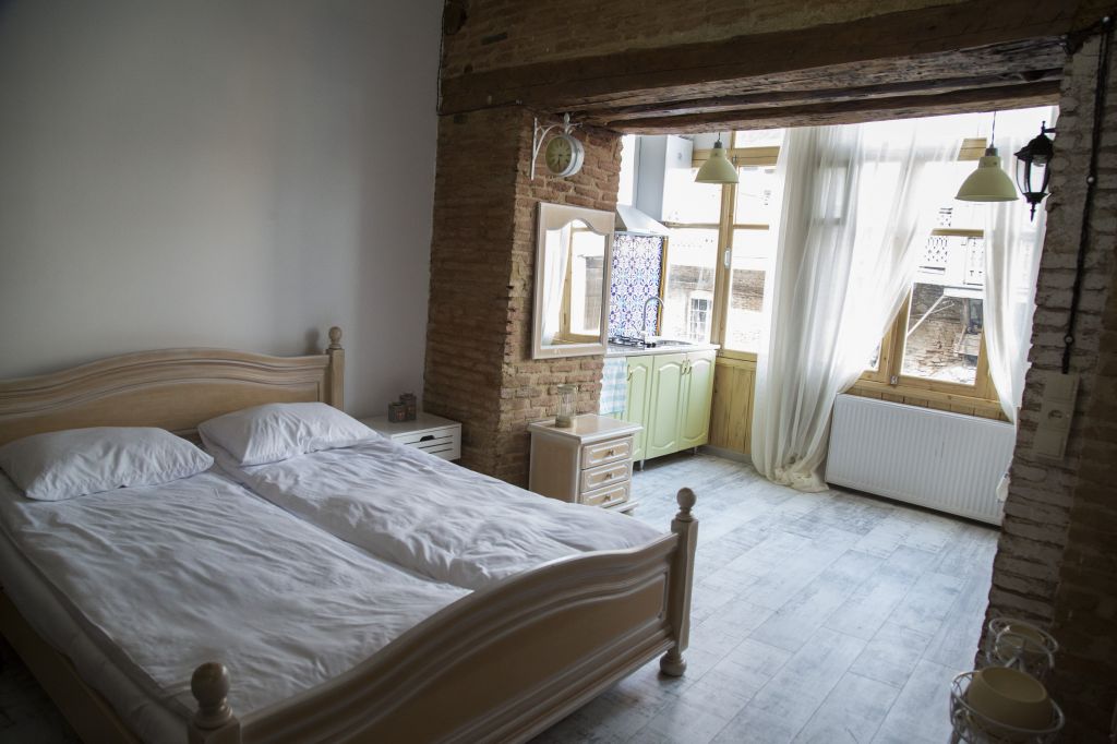Individuality and uniqueness of this apartment will catch your eyes when you open the front door and see 19th century typical interior with new and fresh look. The house is a historical building which was built in 1860. It is 40 sq. flat with high ceiling, heating and cooling system, bathroom, kitchen area, one double bed and one single bed, Wi-Fi, availability of the parking of your vehicle at the apartment.