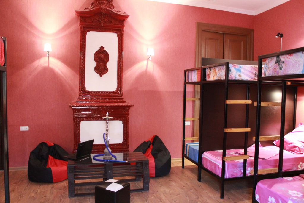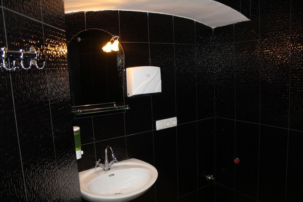 There are two bathrooms in the hotel.rooms are for 12 and 8 persons.also there is minibar and wifi.