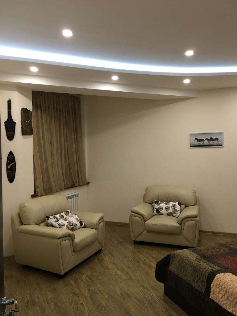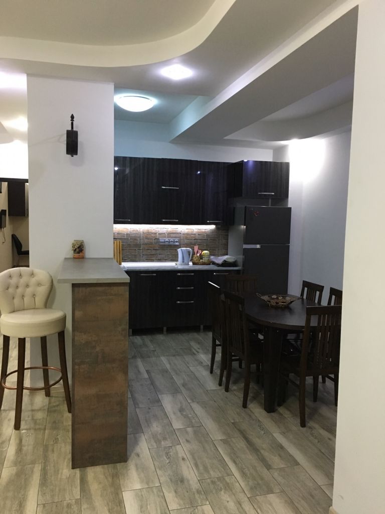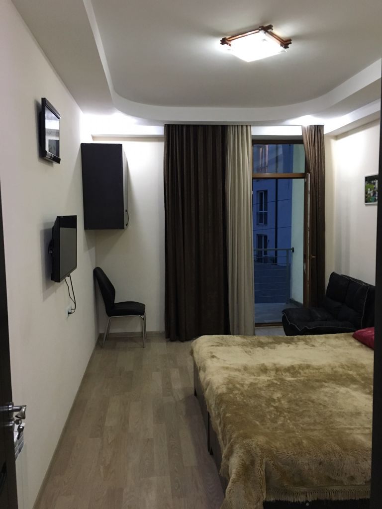 4 bedroom apartment for rent. In newly constructed prestigious building, with high-quality renovated, modern furniture, air-conditioner, TVs, central system with 3 bedrooms and 1 balcony with the view on Mtatsminda. With its underground parking equipped with cameras, the guarded security 24/7. Three minutes walk to Marjanishvili square.