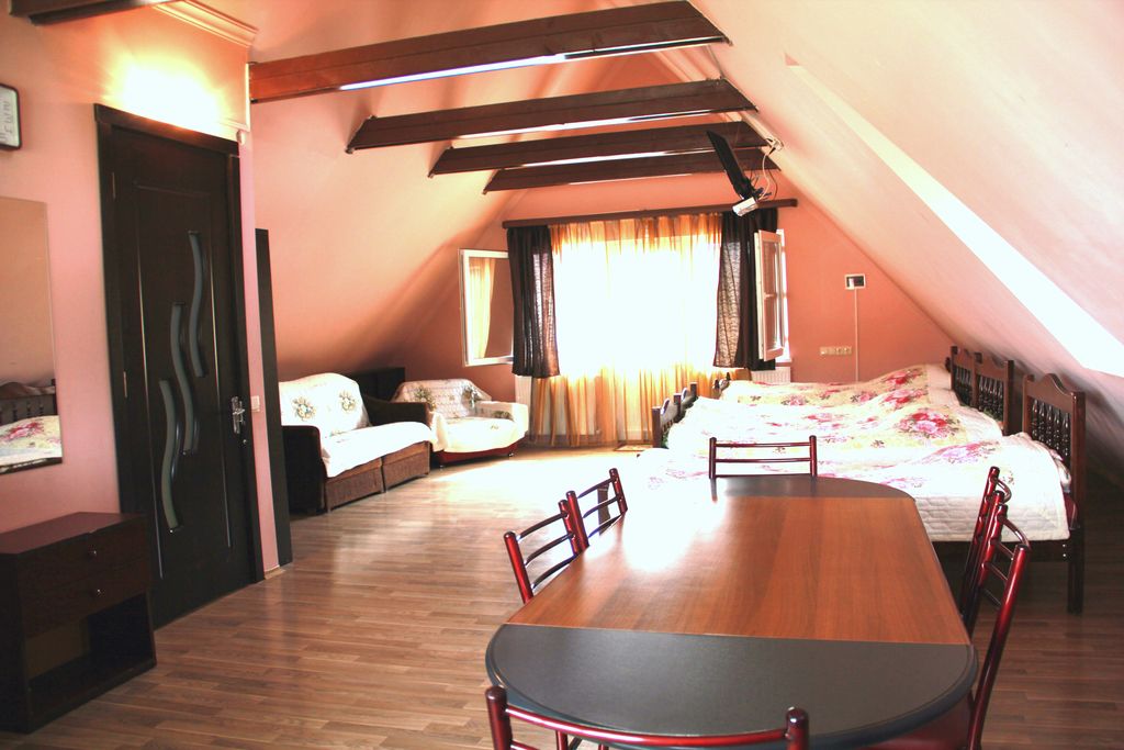 I room - Room with private bathroom, balcony, TV, internet. The kitchen is common. There are 2 beds in the room. In this room you will be comfortably placed 2 senior and 2 children.