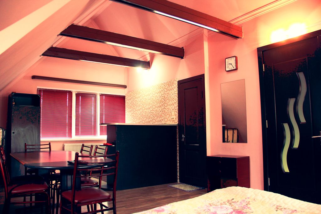 II room - Room with private bathroom, TV, internet. The kitchen is common. The room consists of 1 king bed. Additional folding bed can be placed. In the room comfortably can be placed persons.