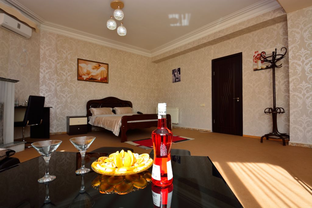 სასტუმრო მოიცავს კეთილმოწყობილ ნომრებს, რომლებიც უზრუნველყოფილია სატელიტური ტელევიზიით, ინტერნეტით (wi-fi), კონდიცირებისა და ცენტრალური გათბობის სისტემით, ერთჯერადი ჰიგიენური საშუალებებითა და სველი წერტილებით ( ცხელი და ცივი წყალი ) . ასევე, ფუნქციონირებს სამზარეულო და ბარი.