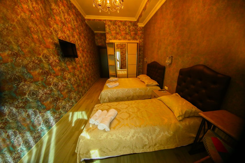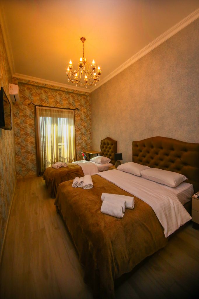 სასტუმროში არის სულ 6 ოთახი - 2 Double , 4 Triple ( Duble-Single) . ასევე სასტუმროს აქვს სტუდიოს ტიპის სამზარეულო და კონტინენტური ტიპის საუზმე.