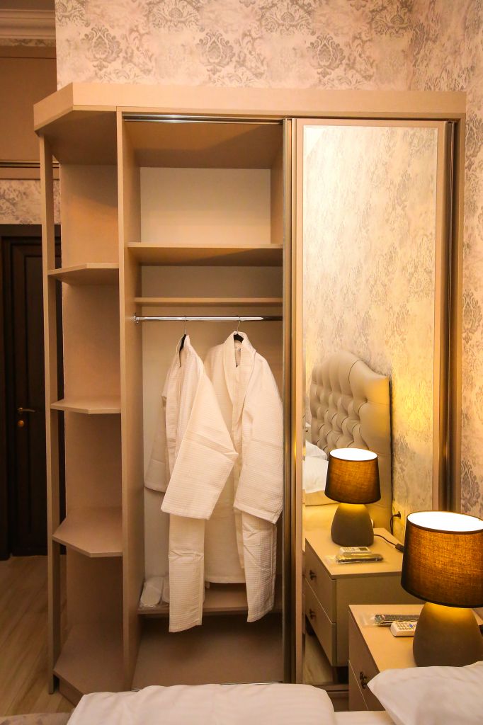ოთახები აღჭურვილია : კომფორტული საწოლებით , კარადით , კონდენციონერით , ტელევიზორით , მაგიდით , პირადი სააბაზანოთი და აივნით .