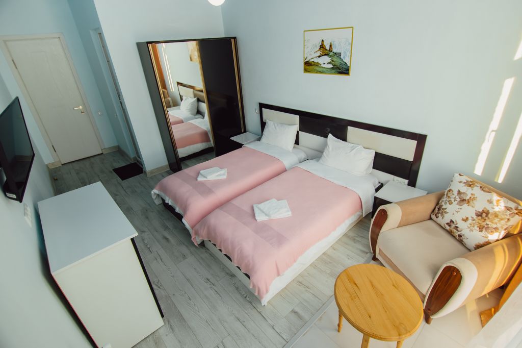 სასტუმროში არის 12 ნომერი,უფასო პარკინგი ,მე 4 სართულზე არის ვერანდა,სადაც შეგიძლიათ დააგემოვნოთ კერძები,დატკბეთ ზღვისა და მთის ხედებით.