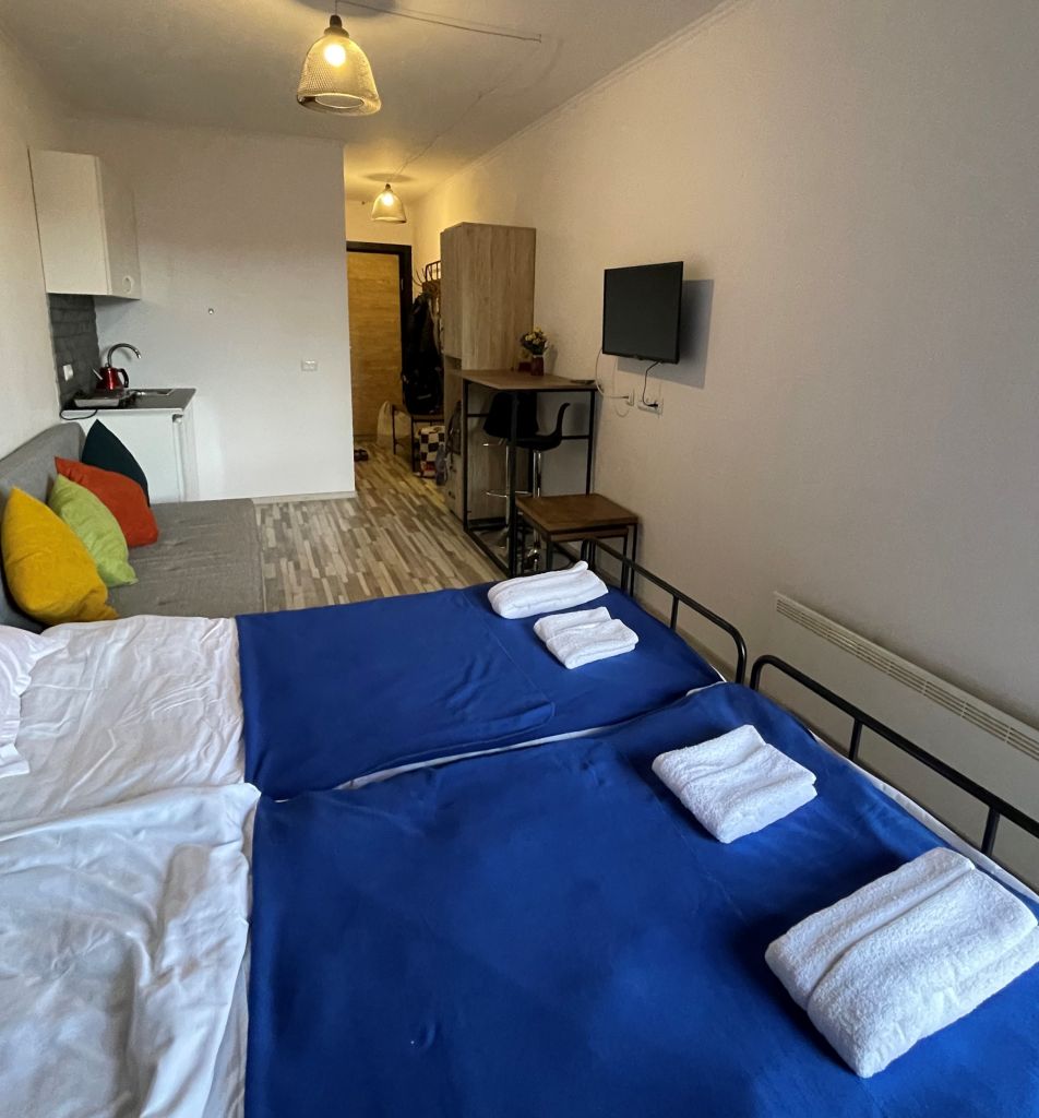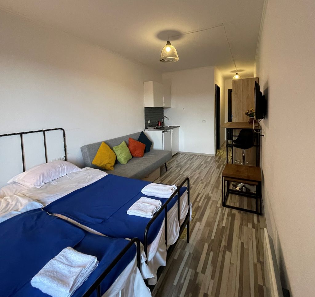 ფასი გათვლილია 2 პერსონაზე. ქირავდება ბინა მგზავრების გუდაურის ლოფტში. პირველ სართულზე, საკუთარი მინი სამზარეულოთი, ტუალეტის ოთახით. 3 ღამეზე მეტი დარჩენისას იკნება ფასდაკლდება. სასტუმროს აქვს საცურაო აუზი და ჯაკუზი (დამატებითი საფასური). პარკინგი სასტუმროსთან, რესტორანი.ისიამოვნეთ თქვენი ყოფნით.