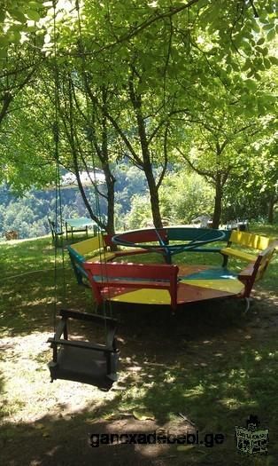 ნაძვნარიანი მთის პეიზაჟითა და მდინარე ,,ბორჯომულას’’ ხედით, ბავშვებისათვის სხვადასხვა გასართობებით.(საქანელები, ჰამაკები, ბატუტი ,აუზი და სხვა)
