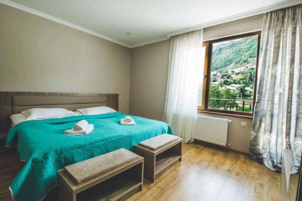 Отель "Mestia Plaza" расположен в Грузии, в населённом пункте Местиа, в 800-х метрах от центрального парка. Все кафэшки и ресторанчики находятся в радиусе 1-го километра. Номера комфортабельные с превосходными видами на горы, реку и сванские башни. У нас круглосуточная стойка регистрации, вкусная национальная кухня, а завтрак включён в цену. Мы поможем Вам, устроить пешие и конные туристические прогулки. Расстояние до горнолыжных курортов "Хацвали" 8 км, "Тетнульди" 15 км.