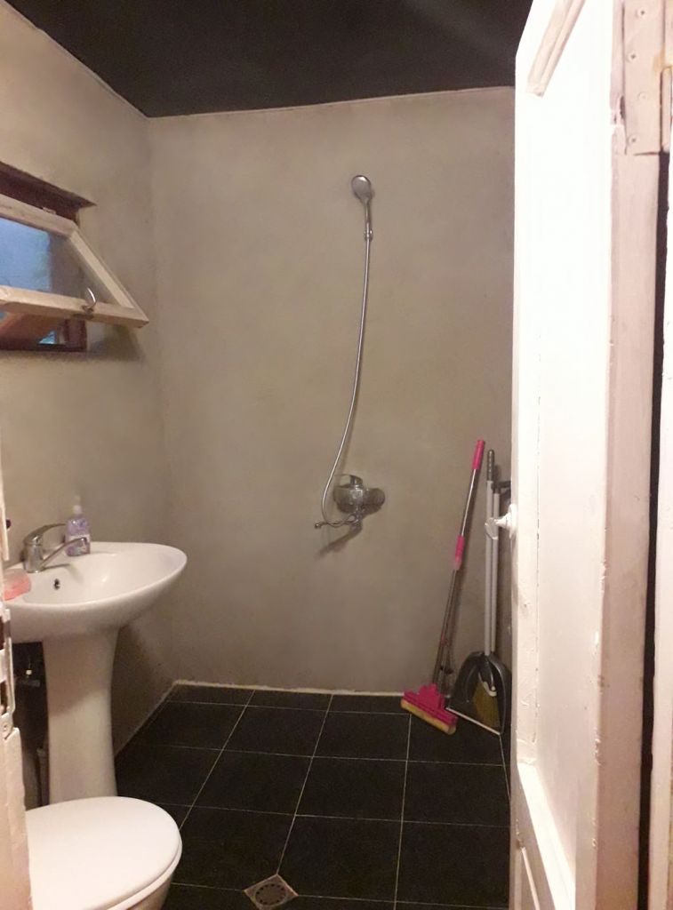 На первом этаже расположены приемная, кухня (с горячей водой), санузлы (ванная с горячей водой, туалет), холодильник, газовая плита, стиральная машина, телевизор, спальня с двухместной кроватью.